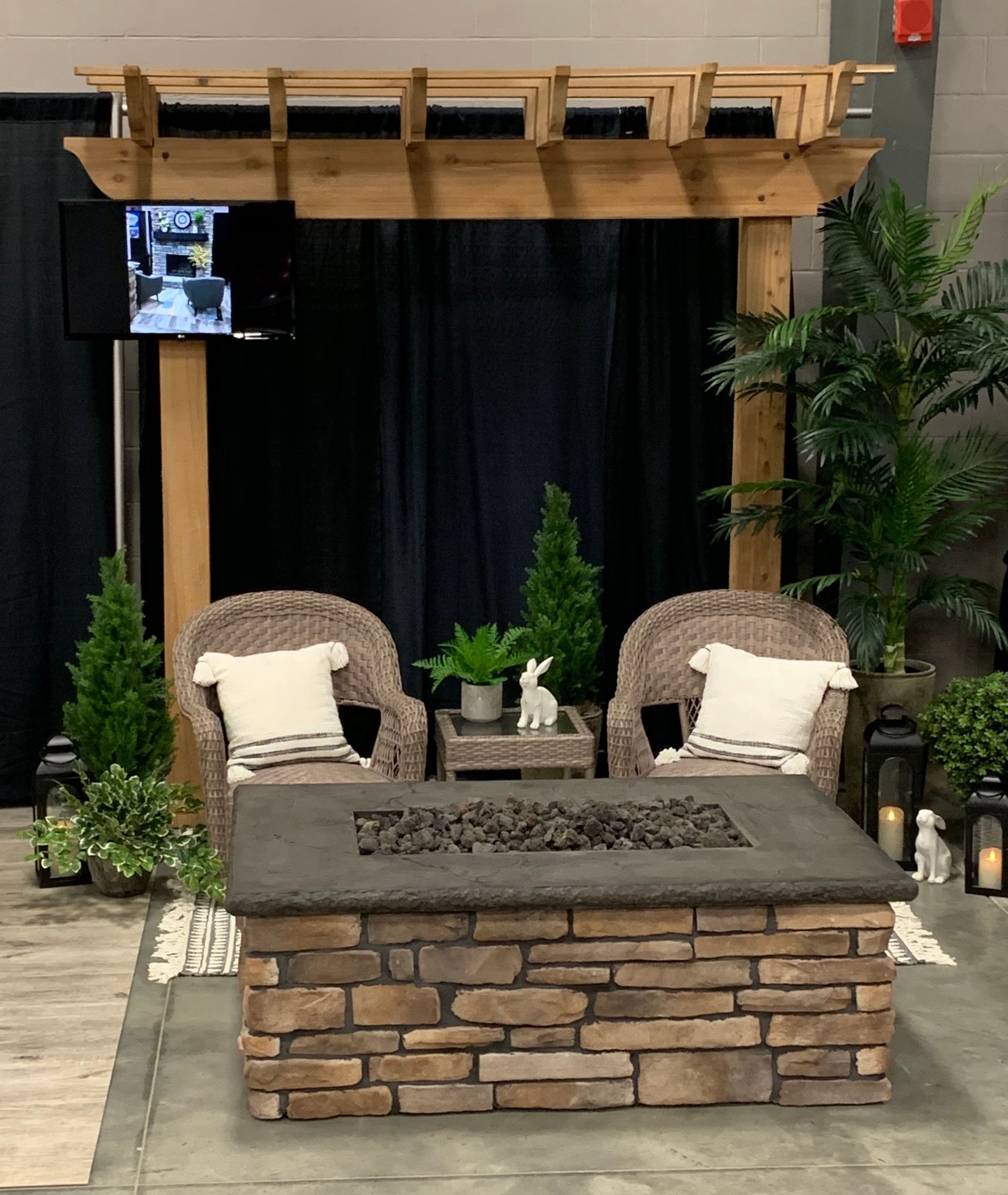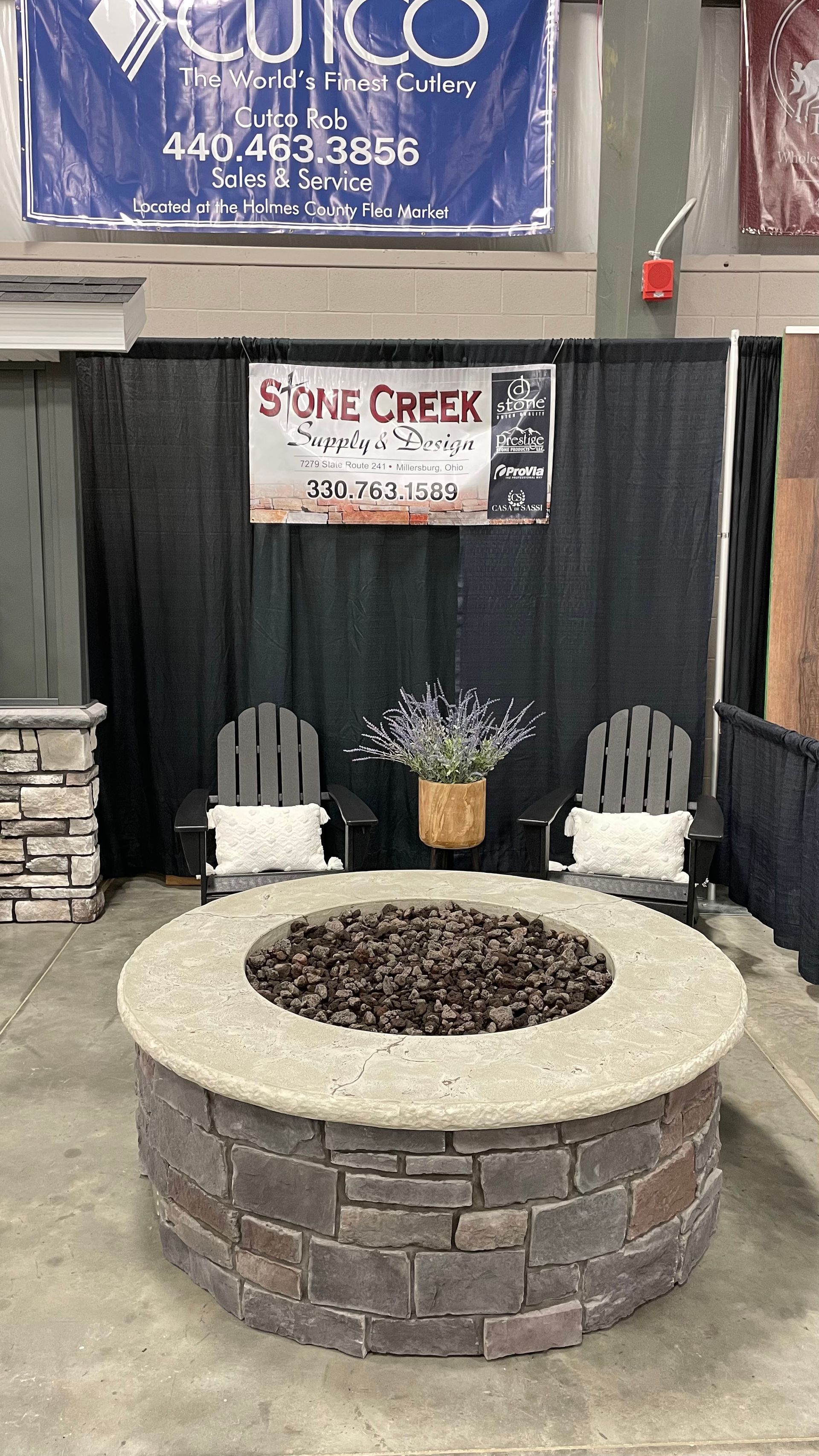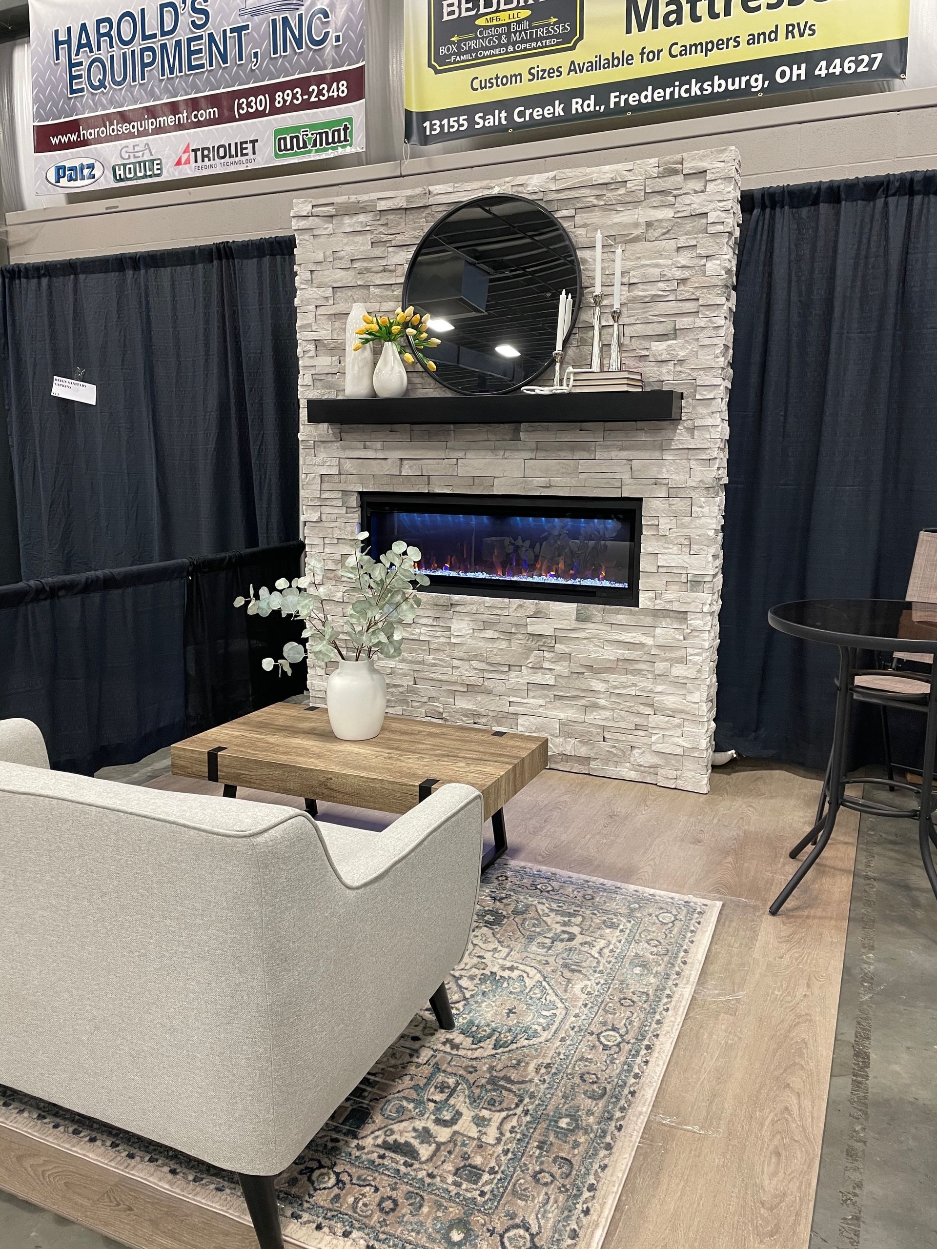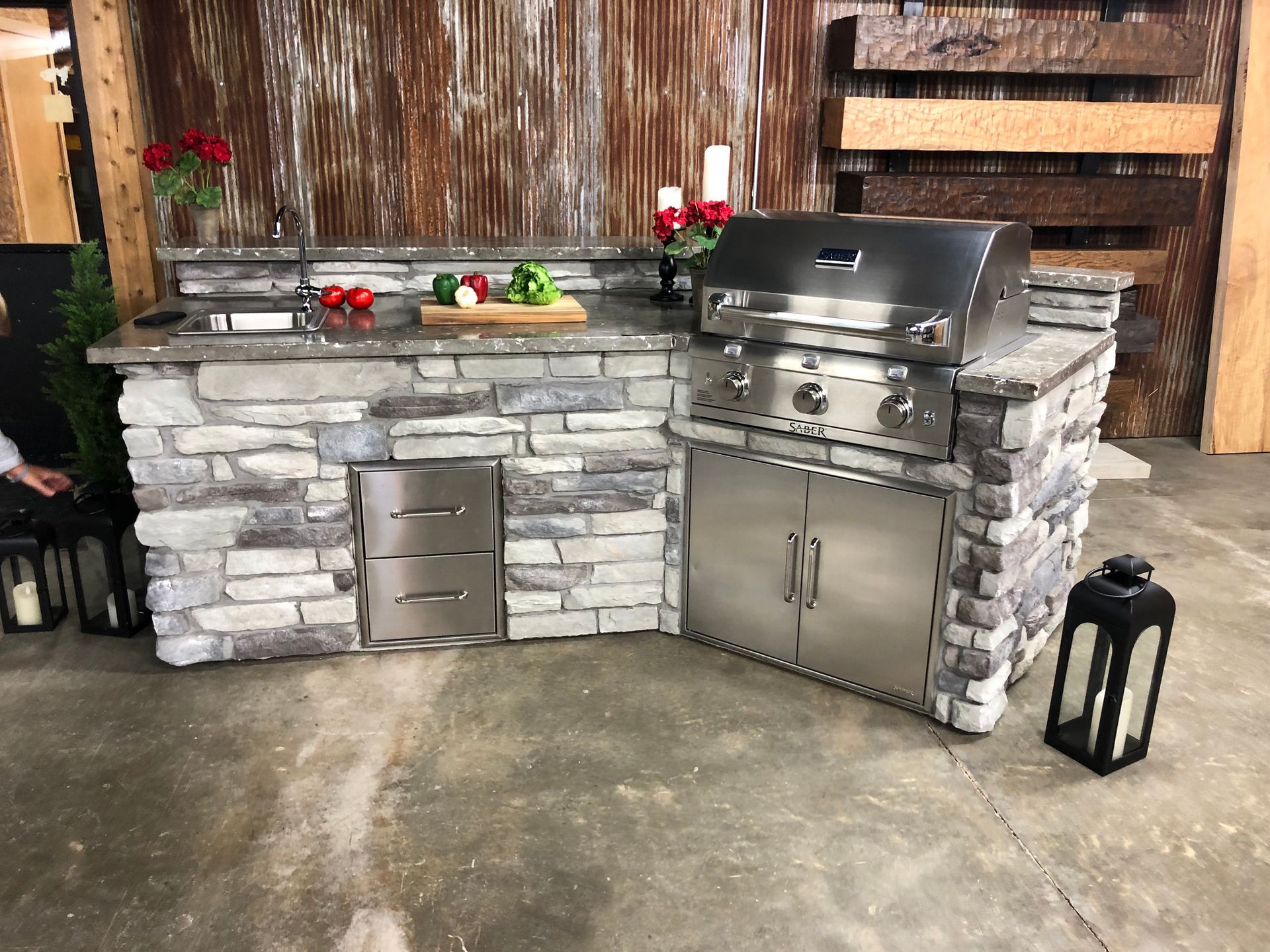 Our multi-display rooms feature stone fireplaces, fireplace mantels, outdoor kitchens, and concrete countertops you can touch and feel—giving you a better idea of exactly how the materials will look in your home. Sit next to a veneer fireplace in our living room vignette and view outdoor kitchen and high-end grills that are integrated into concrete counters and stone.